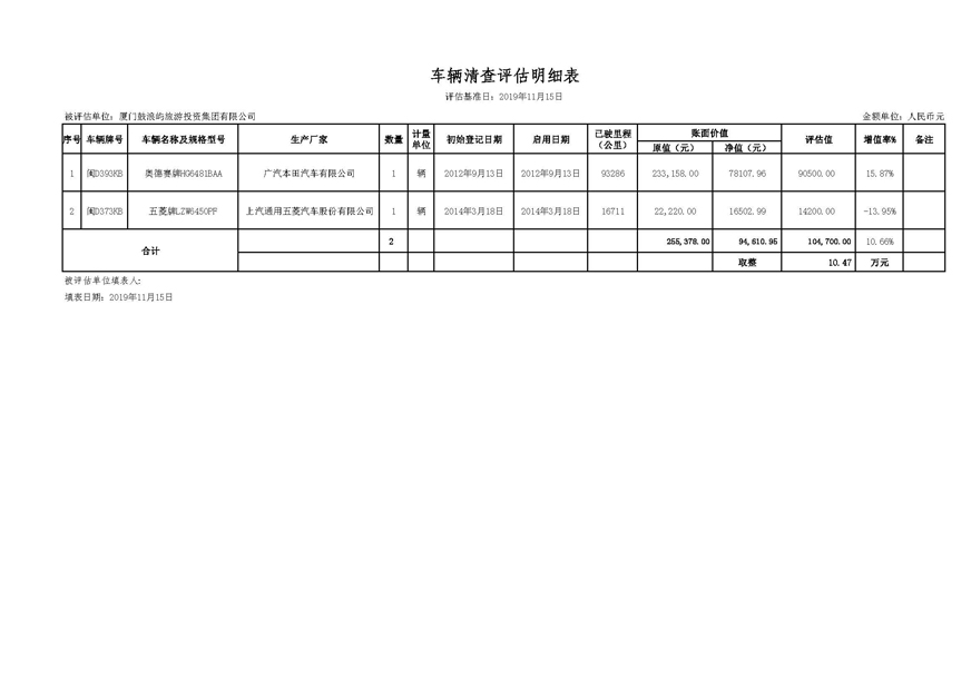 4.《鼓浪嶼旅游集團(tuán)車輛清查評(píng)估明細(xì)表》。
