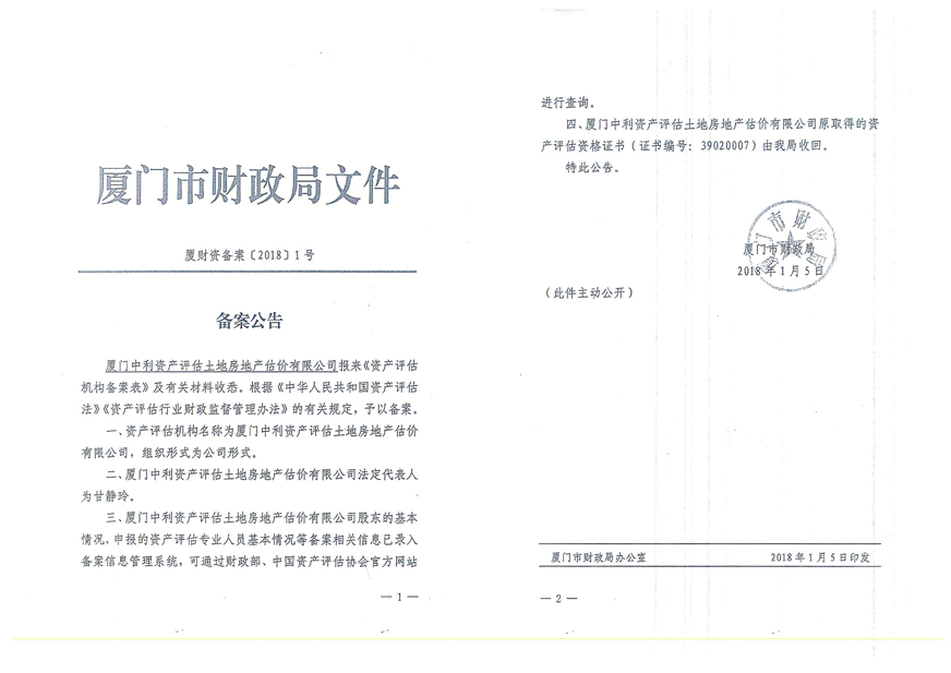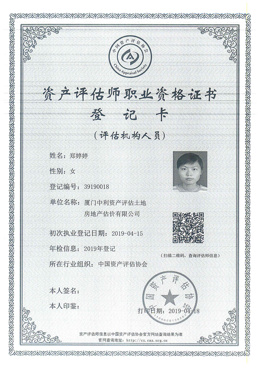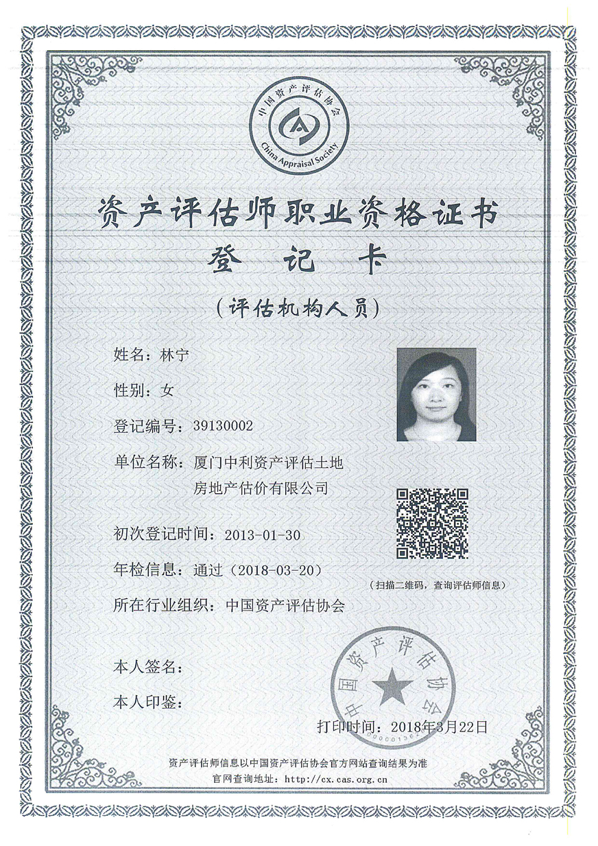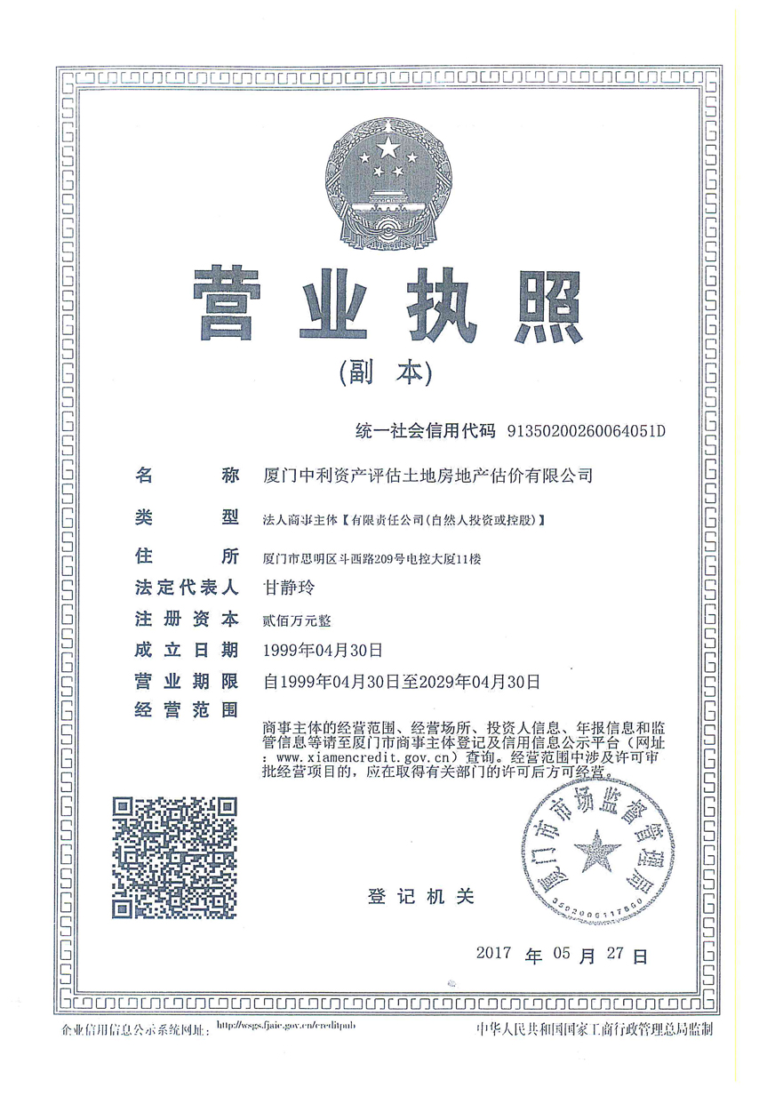 3. 廈門中利資產(chǎn)評(píng)估土地房地產(chǎn)估價(jià)有限公司營(yíng)業(yè)執(zhí)照、評(píng)估資格證書復(fù)印件及注冊(cè)評(píng)估師林寧、鄭婷婷資質(zhì)證書復(fù)印件;