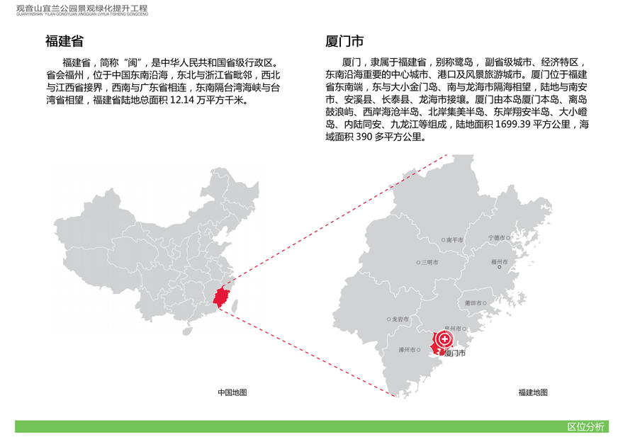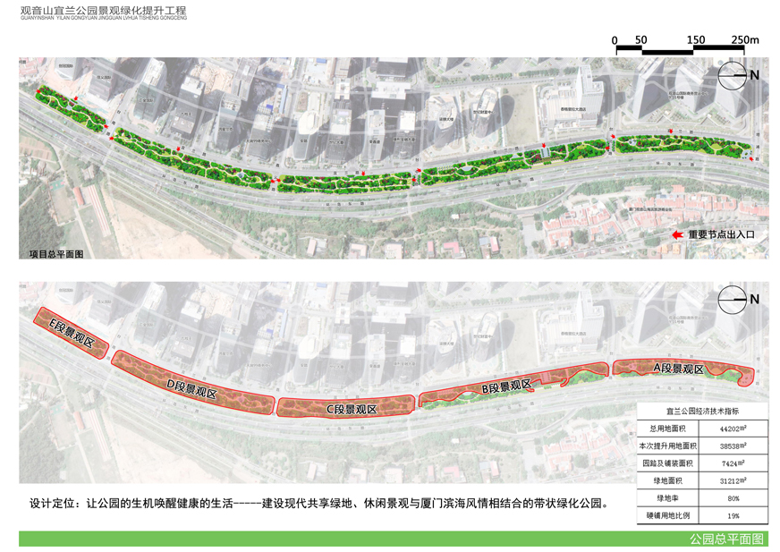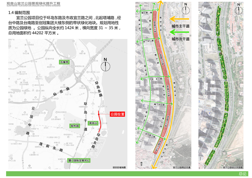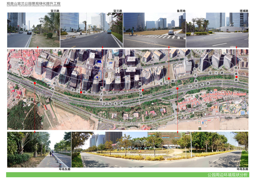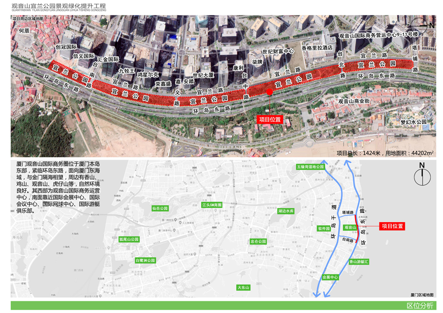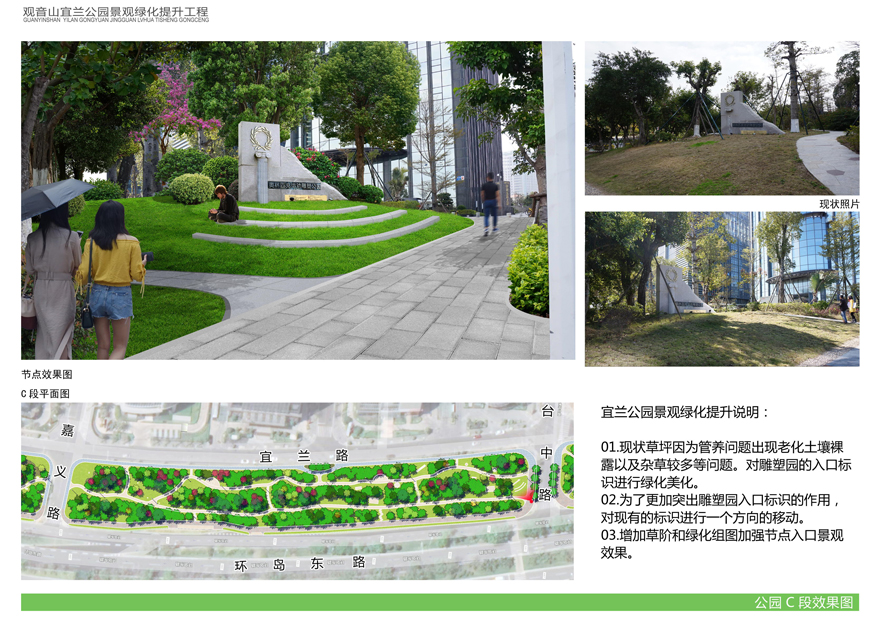 為切實改善上述問題,提升觀音山片區(qū)辦公環(huán)境檔次,廈門市開元國有投資集團有限公司擬對觀音山宜蘭公園進行綠化提升,并委托廈門市城邦園林規(guī)劃設計研究院有限公司進行了方案設計。根據(jù)廈府辦[2019]115號文要求,現(xiàn)將設計方案予以公布并廣泛征求意見。
