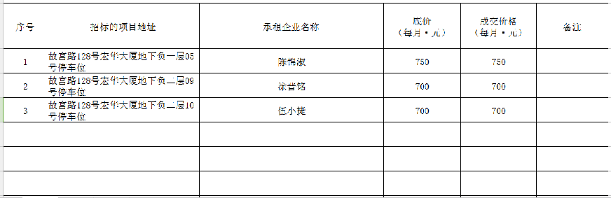 根據(jù)思明區(qū)國(guó)有企業(yè)資產(chǎn)出租管理的相關(guān)制度,我司2020年3月2日上午9:00起于觀音山營(yíng)運(yùn)中心2號(hào)樓2層2號(hào)會(huì)議室進(jìn)行公開招租現(xiàn)場(chǎng)開標(biāo),現(xiàn)通過思明控股網(wǎng)站對(duì)外發(fā)布成交公告,內(nèi)容如下: