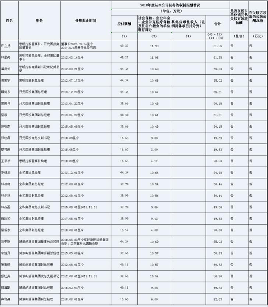 廈門(mén)思明國(guó)有控股集團(tuán)有限公司及三家二級(jí)公司企業(yè)負(fù)責(zé)人2018年度薪酬信息披露表