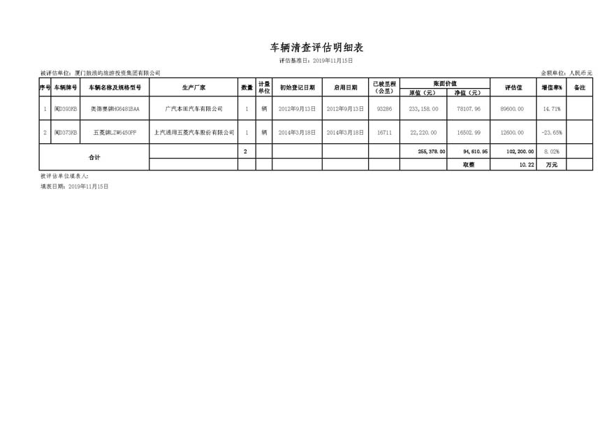 4.《鼓浪嶼旅游集團(tuán)車輛清查評估明細(xì)表》。