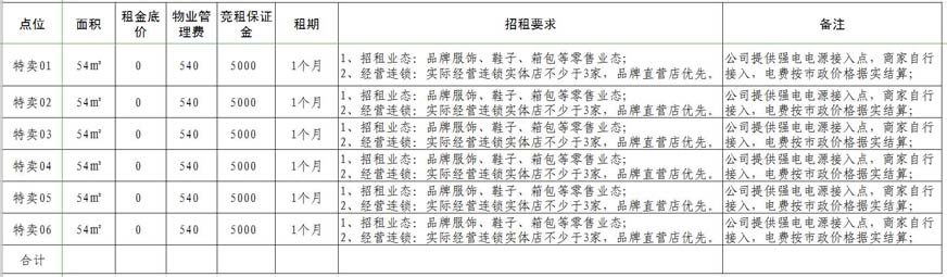 6、競(jìng)租保證金:詳見附表(軟件園生活廣場(chǎng)特賣點(diǎn)位公開招租信息表)。