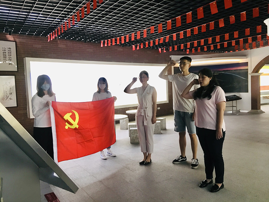 結(jié)束參觀后,全體黨員面對(duì)黨旗舉行莊嚴(yán)的重溫入黨誓詞儀式。黨員在海堤紀(jì)念館前,面對(duì)鮮艷的黨旗,重溫入黨誓詞,洪亮的宣誓讓黨員同志們重憶初心,加固信念堡壘。
