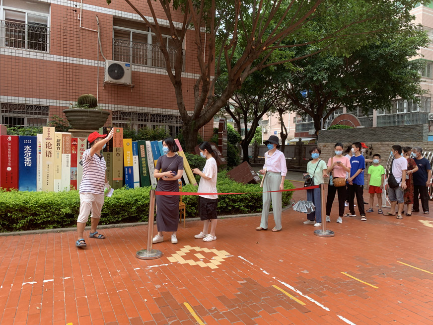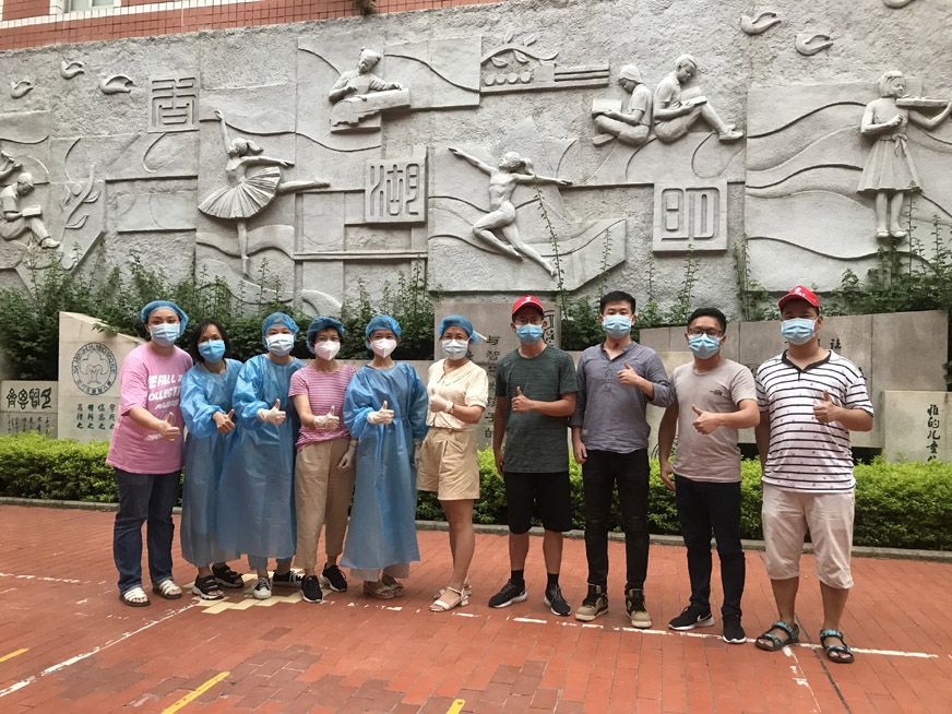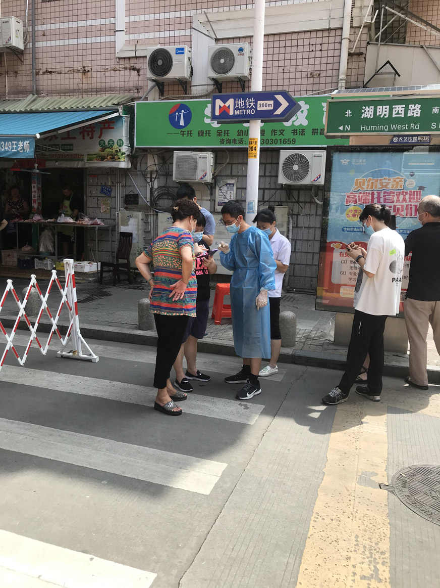 盡管隊(duì)員們幾乎徹夜未眠,31日清晨7點(diǎn),湖明小學(xué)門口,全和第一支抗疫志愿者隊(duì)伍10人全部準(zhǔn)時(shí)集結(jié)到位。在領(lǐng)隊(duì)招商部經(jīng)理邱慧瓊的帶領(lǐng)下,主動(dòng)對接街道社區(qū)工作人員,領(lǐng)取工作任務(wù)。很快,隊(duì)員們各就各位、迅速上崗,與醫(yī)務(wù)人員、社區(qū)工作人員擰成一股繩:測量體溫、維持秩序;指引登記、答疑解惑;上門動(dòng)員、分批引導(dǎo),登記錄入,面對不會(huì)用手機(jī)預(yù)約的老人、預(yù)約條形碼不規(guī)范的群眾,隊(duì)員們細(xì)致耐心地指導(dǎo)、不厭其煩地重復(fù)答疑,用微笑化解疫情之下群眾的焦躁心情,全力協(xié)助核酸檢測工作,用實(shí)際行動(dòng)踐行國企擔(dān)當(dāng)。