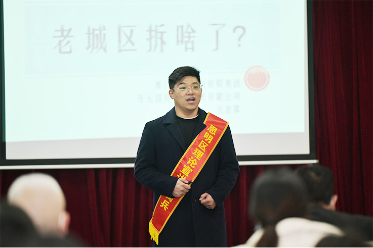 專(zhuān)家解讀部分,區(qū)委宣講團(tuán)成員、廈門(mén)理工學(xué)院洪認(rèn)清教授以《牢記囑托、勇毅前行,建設(shè)更加美麗富裕繁榮平安的幸福思明》為題,結(jié)合省、市、區(qū)黨代會(huì)精神和習(xí)近平總書(shū)記致廈門(mén)經(jīng)濟(jì)特區(qū)建設(shè)40周年的賀信等內(nèi)容,從政治、經(jīng)濟(jì)、文化等多角度深刻剖析了思明區(qū)在省、市發(fā)展大局中的重要地位,鼓勵(lì)大家要牢記總書(shū)記囑托,奮力譜寫(xiě)新華章。