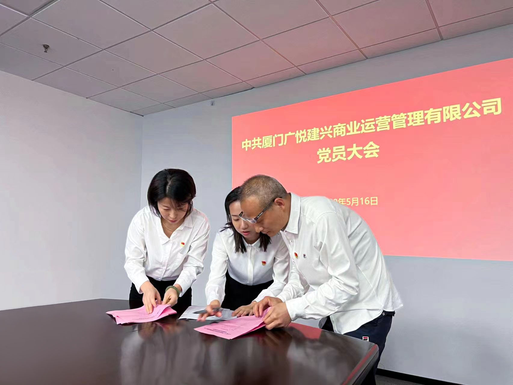 會議在莊嚴的國歌聲中開始,思明控股黨委辦公室主任傅雅琳宣讀了《關(guān)于同意成立中共廈門廣悅建興商業(yè)運營管理有限公司支部委員會的批復》。會議以無記名投票、差額選舉的方式,選舉產(chǎn)生廣悅建興黨支部第一屆支委會委員。隨后,在第一次支委會上選舉并分工,黃海同志任廣悅建興黨支部書記、顏海聰同志任副書記,王小銘同志任組織委員兼紀檢委員。