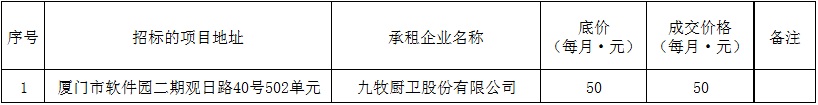 根據(jù)思明區(qū)國有企業(yè)資產(chǎn)出租管理的相關(guān)制度,我司2019年4月11日上午9:00于觀音山營運中心2號樓2層2號會議室進行公開招租現(xiàn)場開標(biāo),現(xiàn)通過思明控股網(wǎng)站對外發(fā)布成交公告。內(nèi)容如下: